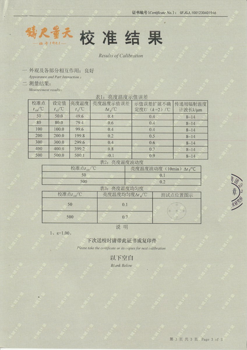 浙江弘志計量測試有限公司 黑體輻射源 校準證書(shū) 2023-5-4 本文被閱讀 13529 次