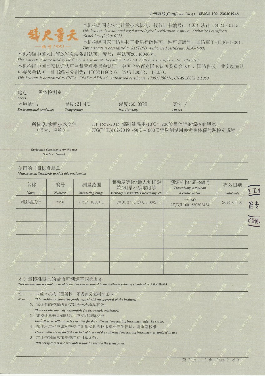 上一條:無(wú)錫英菲感知技術(shù)有限公司 高溫黑體 校準證書(shū)(1)下一條:高精度制冷恒溫槽(-80~100℃)校準證書(shū)