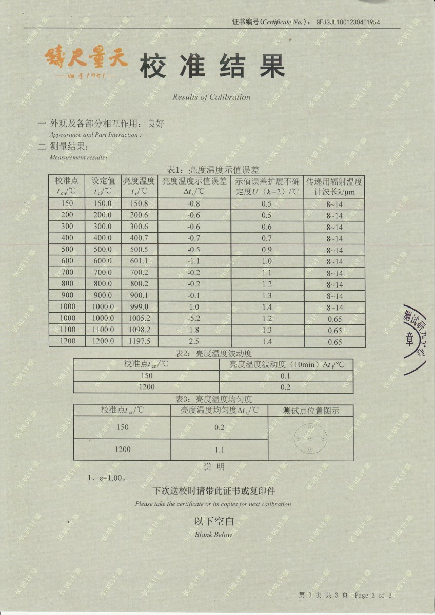中航工程集成設備有限公司 黑體輻射源 校準證書(shū) (2) 2023-5-4 本文被閱讀 14725 次