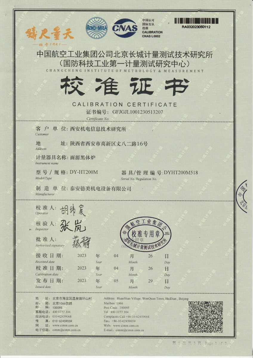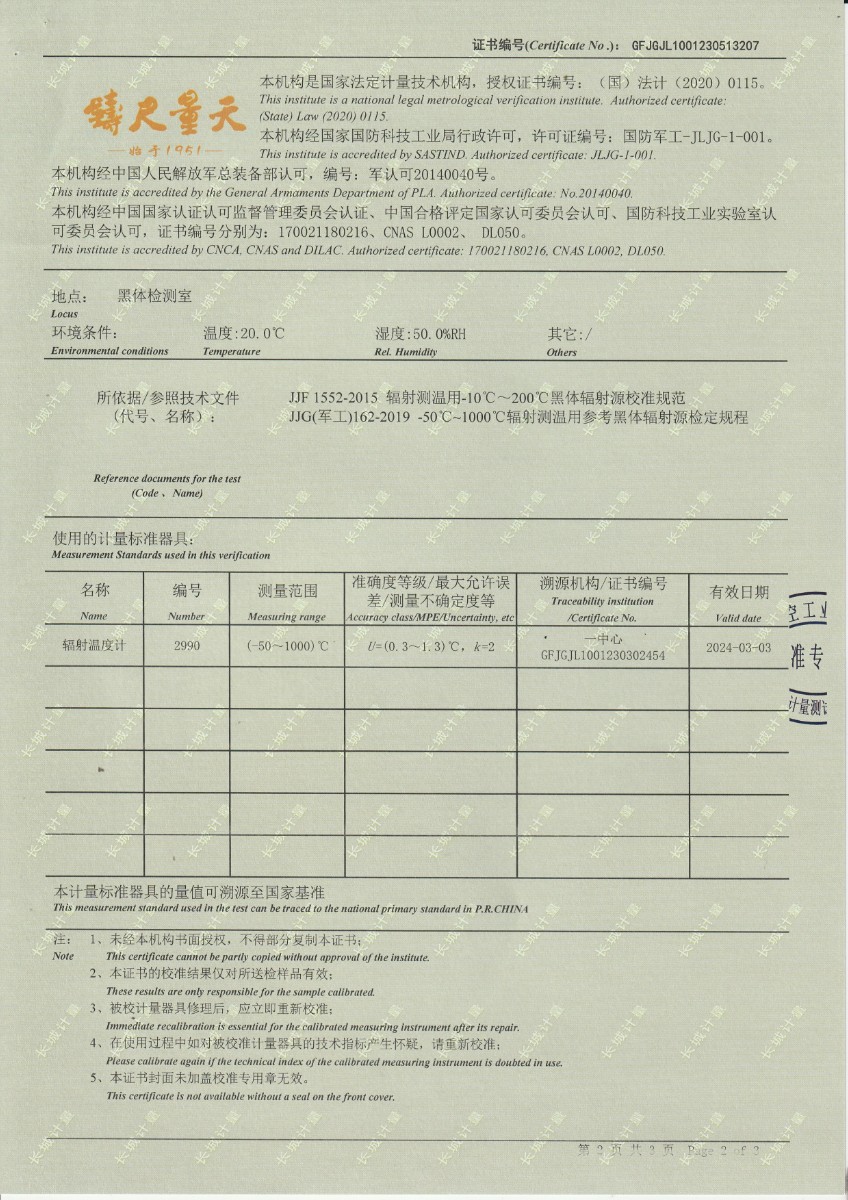 | 上一條:云南馳宏國際鍺業(yè)有限公司 面源黑體校準證書(shū) | 下一條:高精度制冷恒溫槽(-80~100℃)校準證書(shū) |