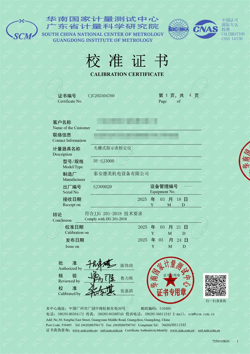 光柵式指示表檢定儀校準證書(shū) 2025-4-3 本文被閱讀 4117 次