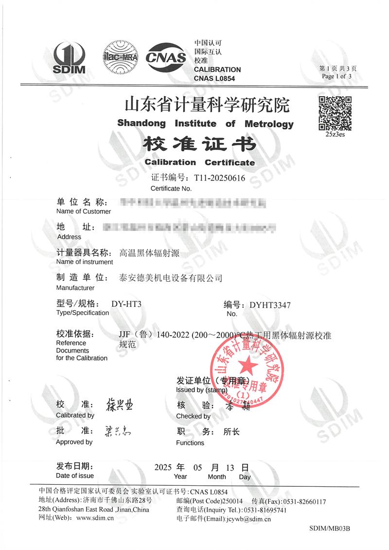 | 上一條:黑體爐(50~400℃)校準證書(shū) | 下一條:高精度制冷恒溫槽(-80~100℃)校準證書(shū) |