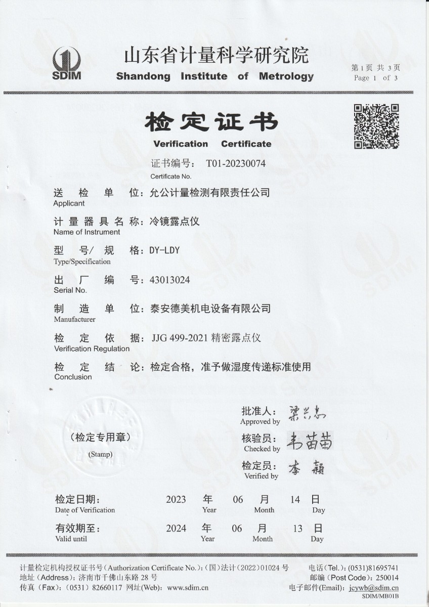 | 上一條:允公計量檢測有限責任公司-冷鏡露點(diǎn)儀校準證書(shū) | 下一條:高精度制冷恒溫槽(-80~100℃)校準證書(shū) |