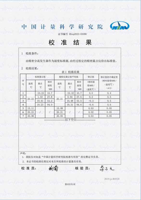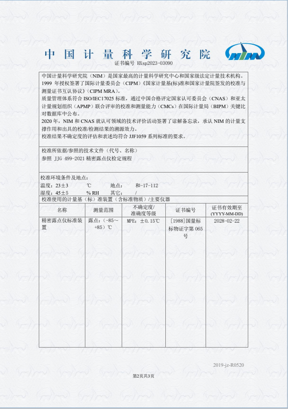 露點(diǎn)儀校準證書(shū) 2023-11-27 本文被閱讀 8424 次