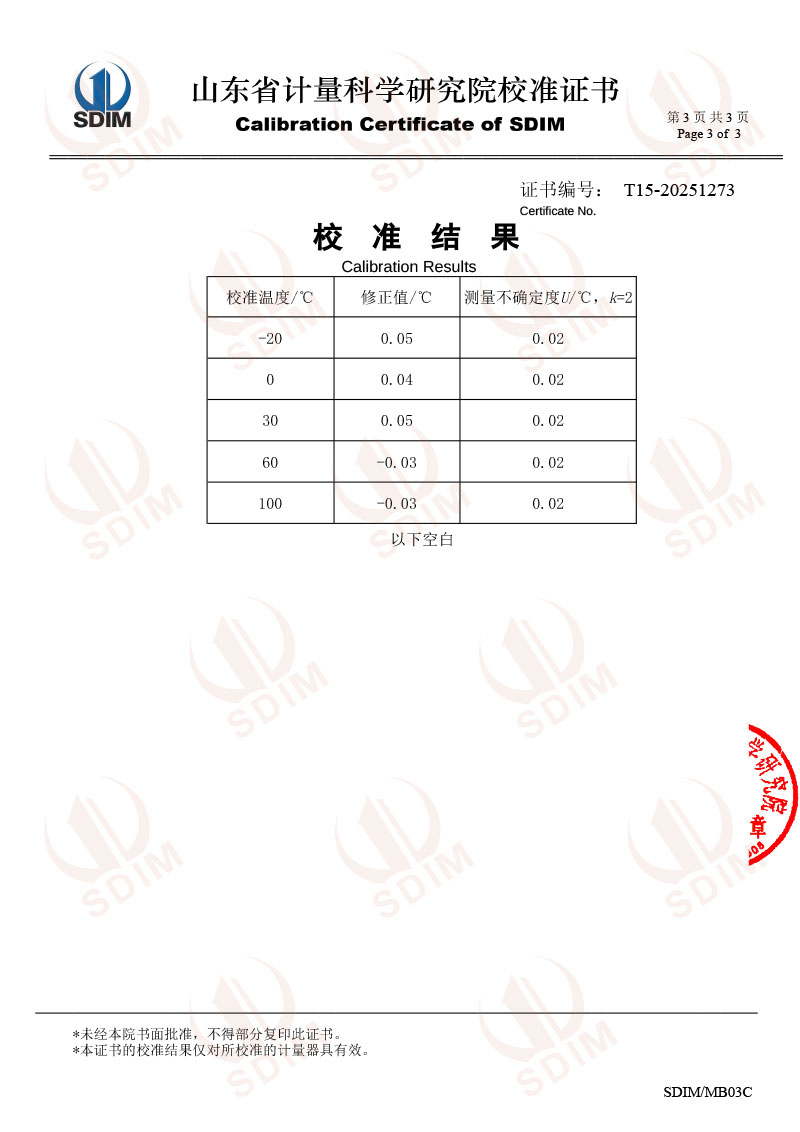 上一條:高精度熱管恒溫槽(50-300℃)校準證書(shū)下一條:高精度制冷恒溫槽(-80~100℃)校準證書(shū)