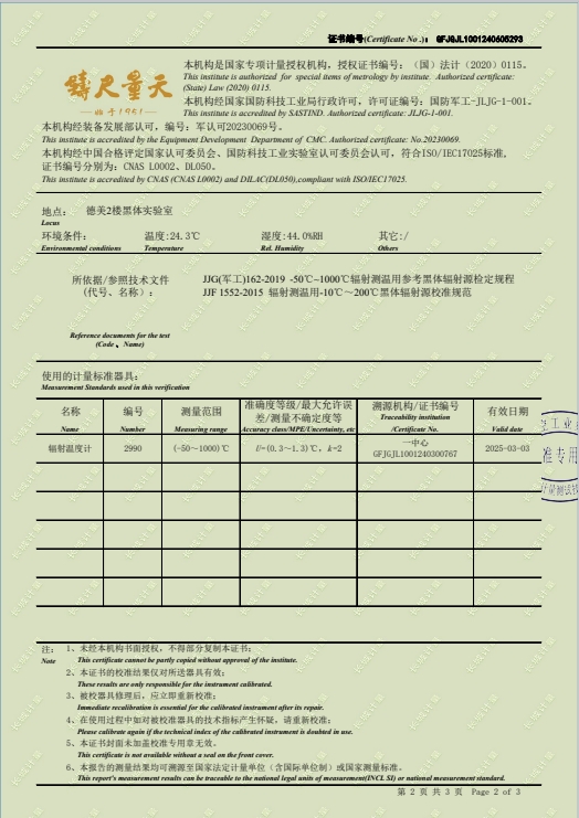 黑體輻射源(50-700℃)304所校準證書(shū)