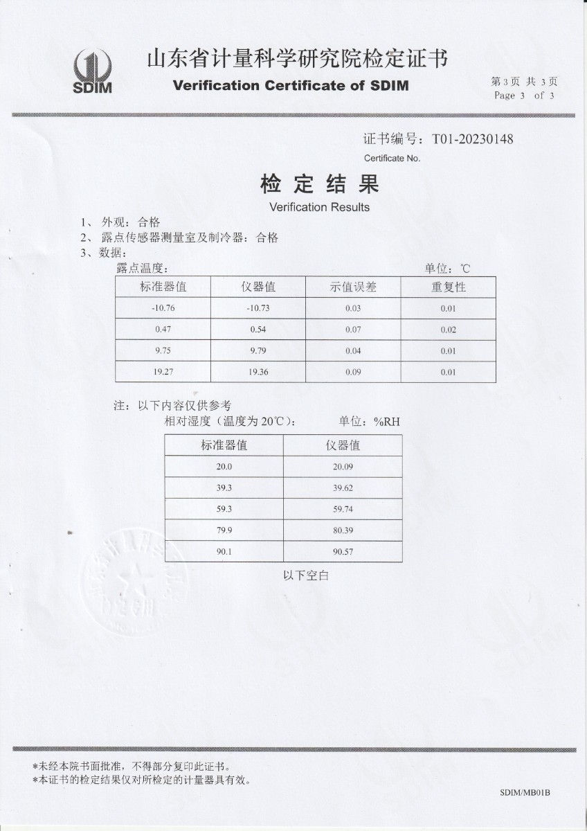 冷鏡式露點(diǎn)儀檢定證書(shū)