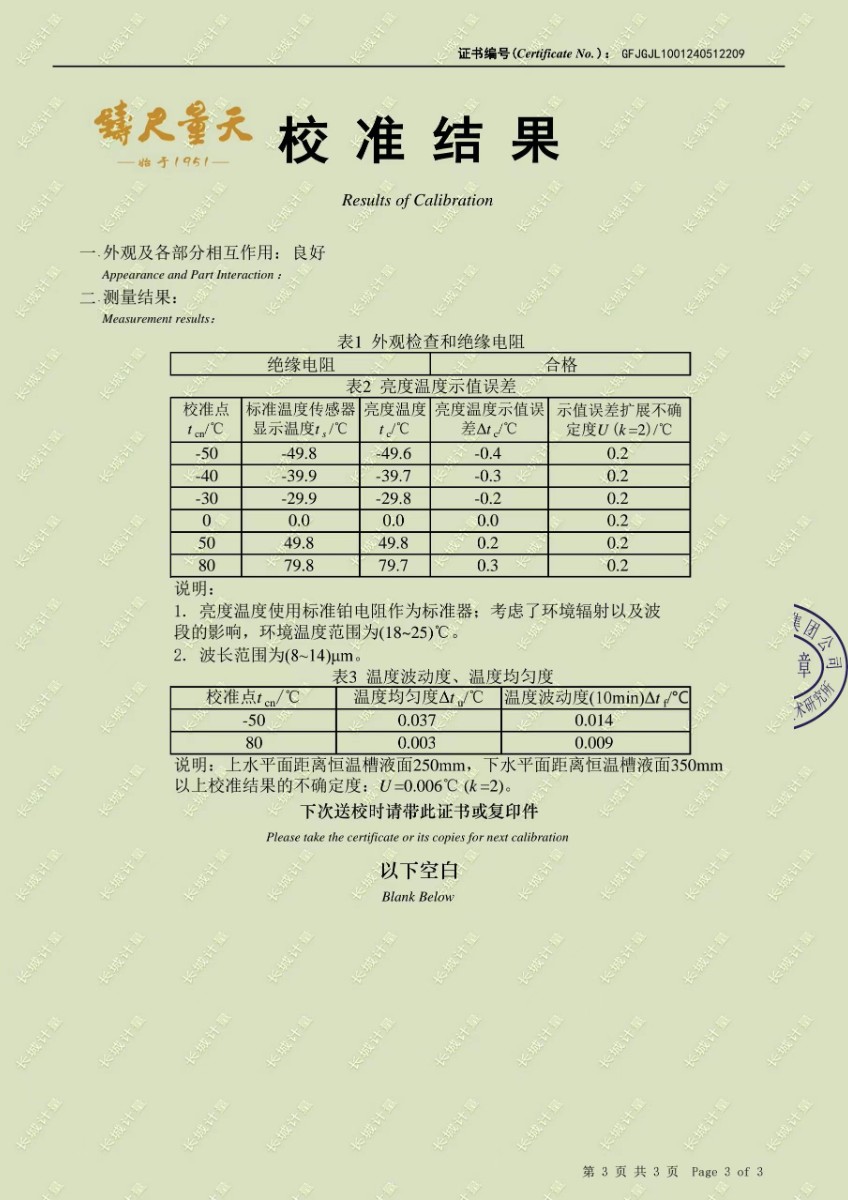 低溫浴式黑體輻射源校準證書(shū) 2024-5-31 本文被閱讀 8703 次
