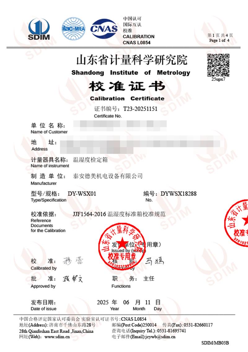 溫濕度檢定箱(-5-65℃)校準證書(shū) 2025-6-13 本文被閱讀 3559 次